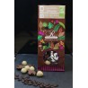 Un mélange d'amandes, de noix et de noisettes enrobéesd'une fine pellicule de chocolats (noir, blanc ou lait), le tout issu de l'agriculture biologique.