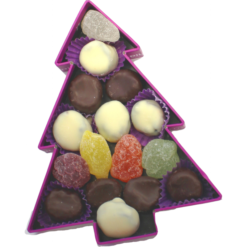 Cette corbeille est composée de pruneaux d'Agen IGP enrobés de chocolat blanc et noir et pates de fruits.