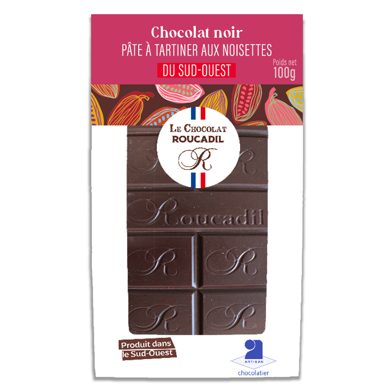 Tablette chocolat noir pâte à tartiner aux noisettes du Sud-Ouest