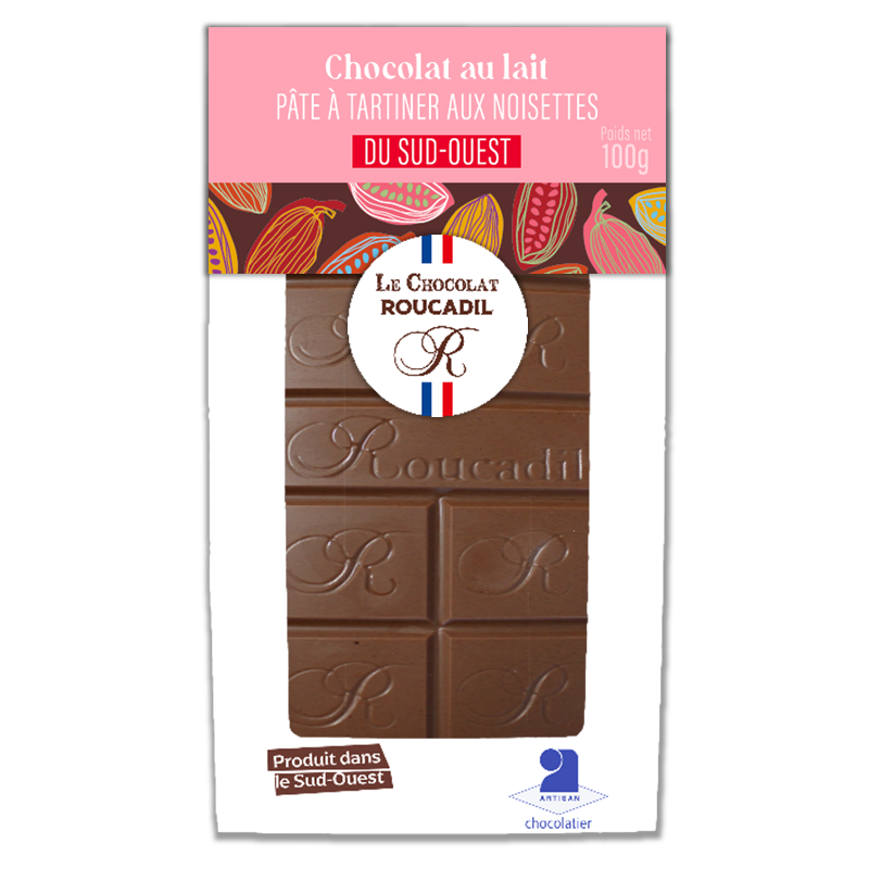 Tablette chocolat au lait Pâte à tartiner aux noisettes du Sud-Ouest - 100g